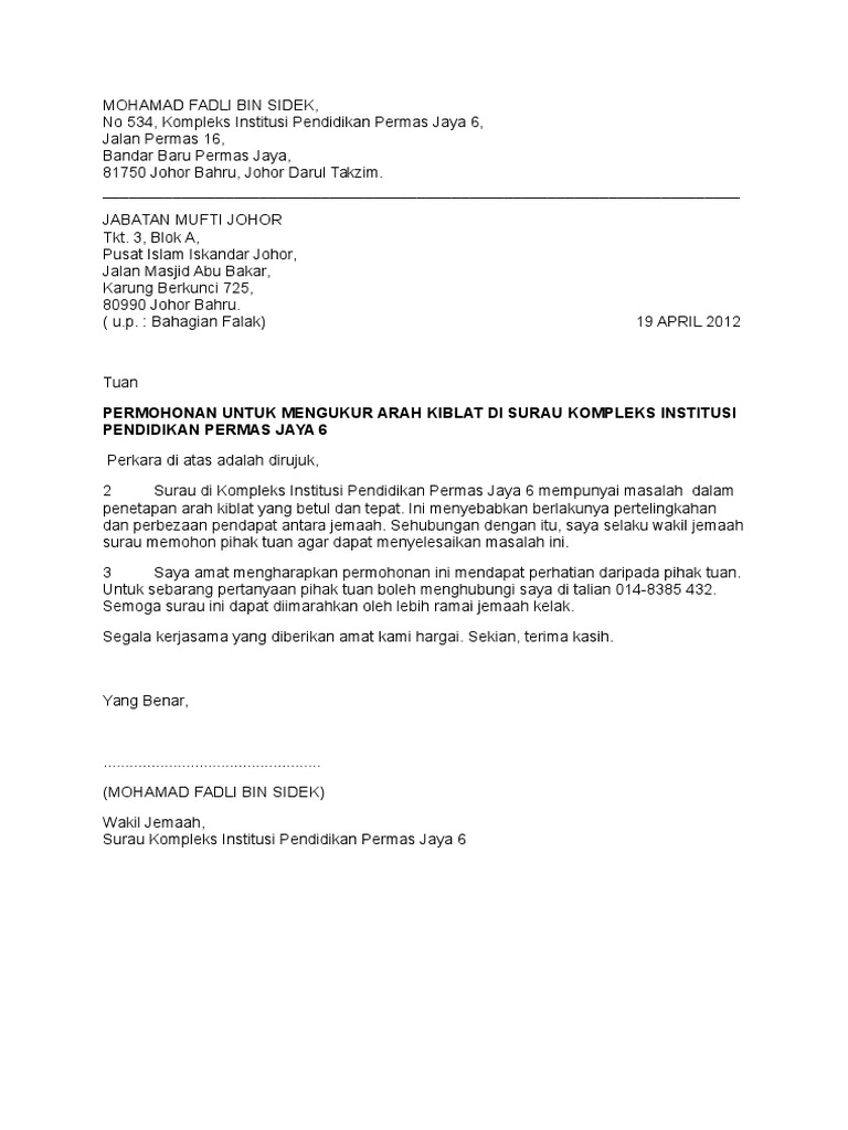 Contoh Surat Permohonan Letak Tabung Di Masjid